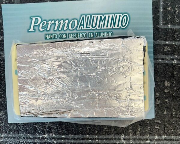 Tela recubierta una cara de asfalto y otra de aluminio.